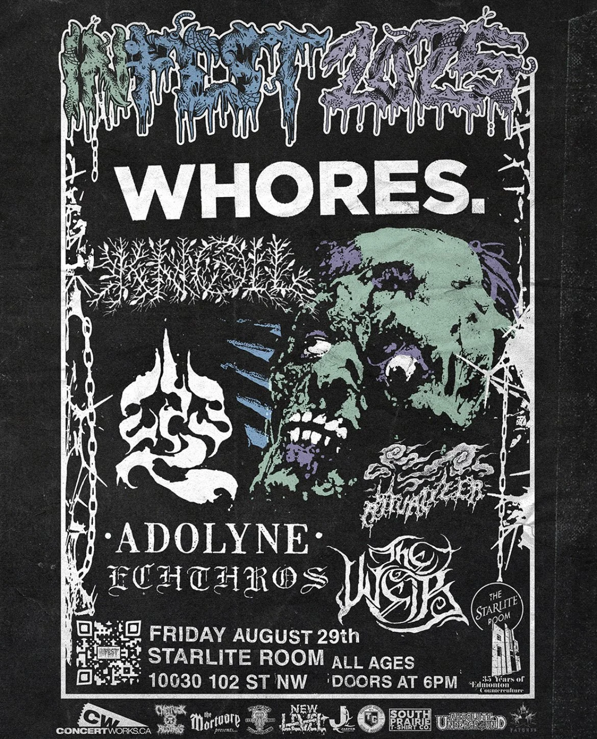 INFEST with WHORES., KNOLL, EYEL, ADOLYNE, THE WEIR, ECHTHROS & RITUALIZER